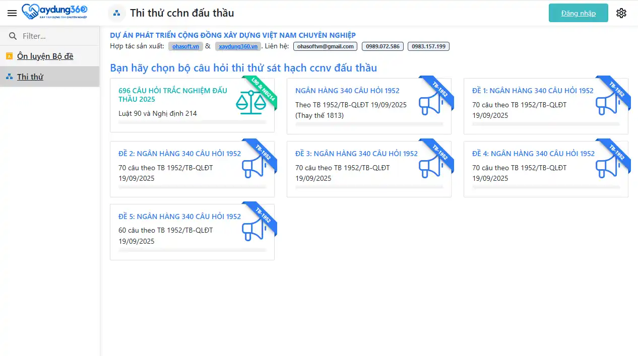 Phần mềm thi chứng chỉ hành nghề xây dựng miễn phí
